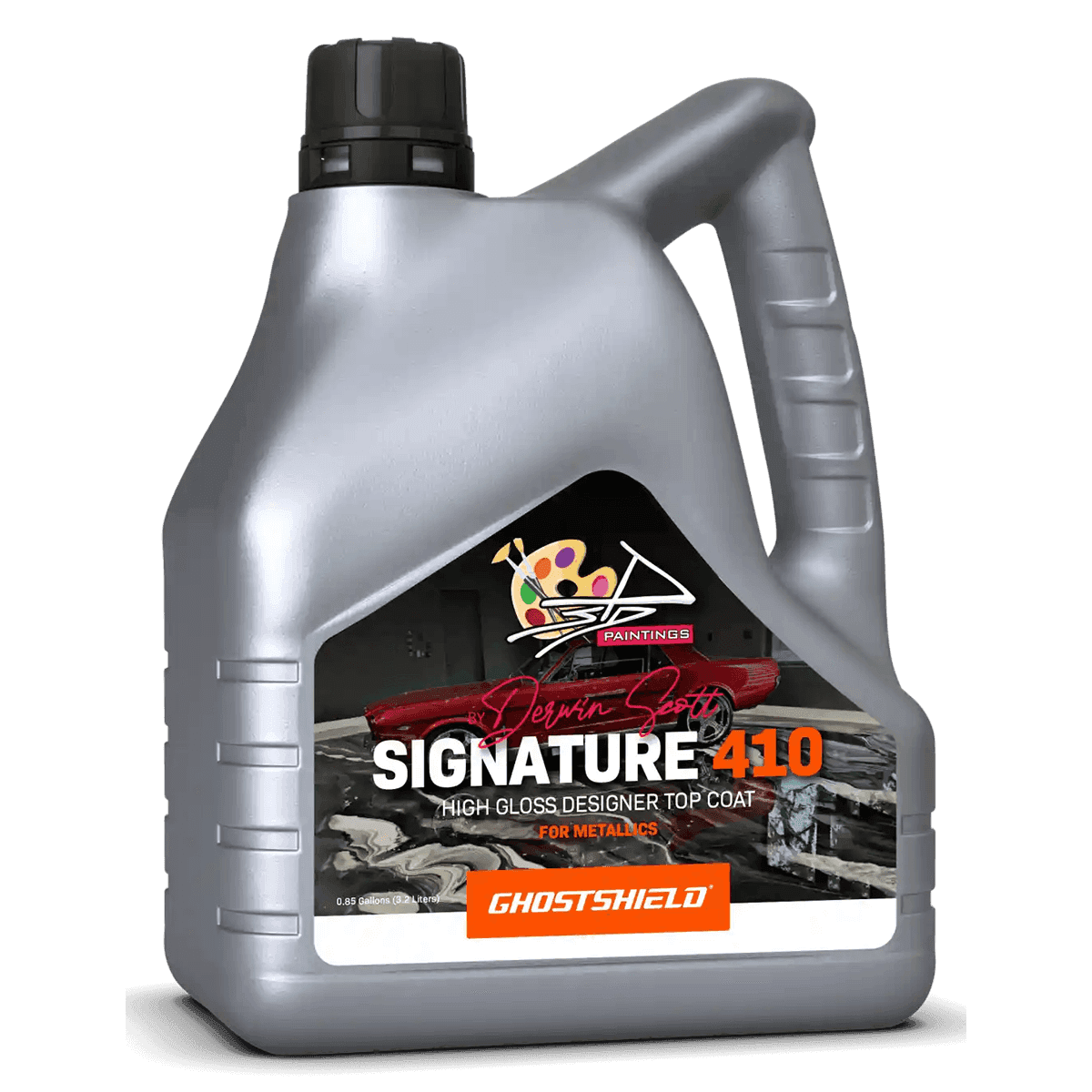 Ghostshield Signature 410 is a high-gloss, single-component designer topcoat engineered to enhance and protect concrete, epoxy, and metal surfaces. Its advanced quartz-mineral formulation bonds chemically to the substrate—no sanding or grinding required—creating a durable, self-leveling shield that resists UV damage, chemicals, abrasion, graffiti, mold, and oxidation. Signature 410 delivers a sleek, mirror-like finish that boosts color depth on metallic and solid-color epoxy floors. Ideal for residential, commercial, and industrial applications, it offers fast dry times, easy spray application, and long-lasting performance with exceptional surface hardness and clarity.